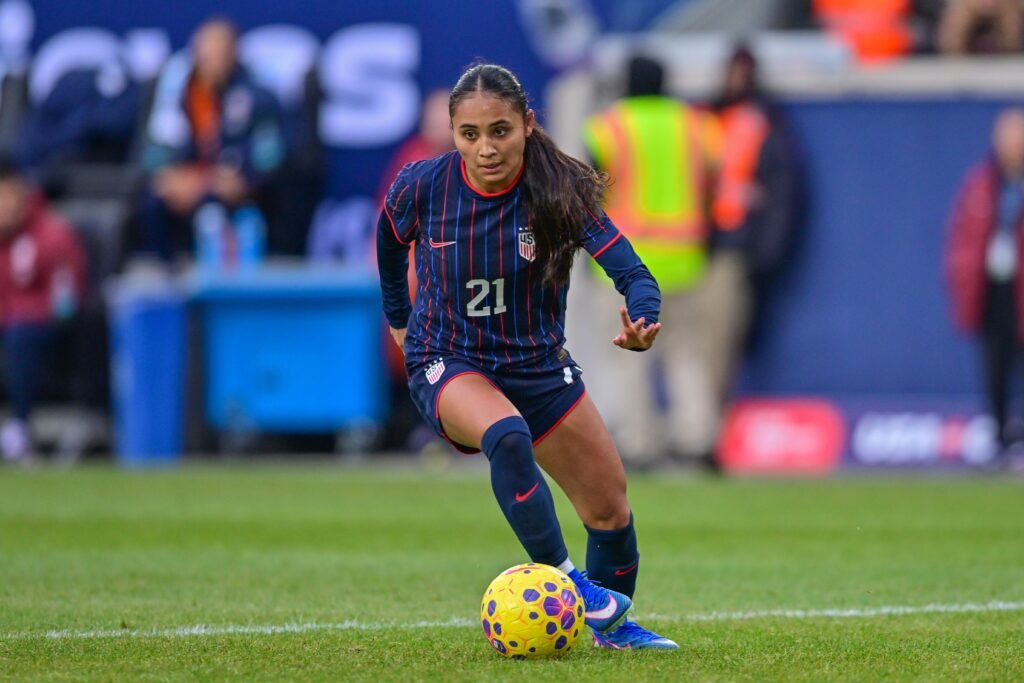 The talented twenty-one year-old striker from California, who broke into the NWSL as a high-school senior in 2023, recently made the move to Chelsea this season and has been in top form since the fall. Against Colombia, it took more grit and determination to find the goal to put the U.S. up for good.